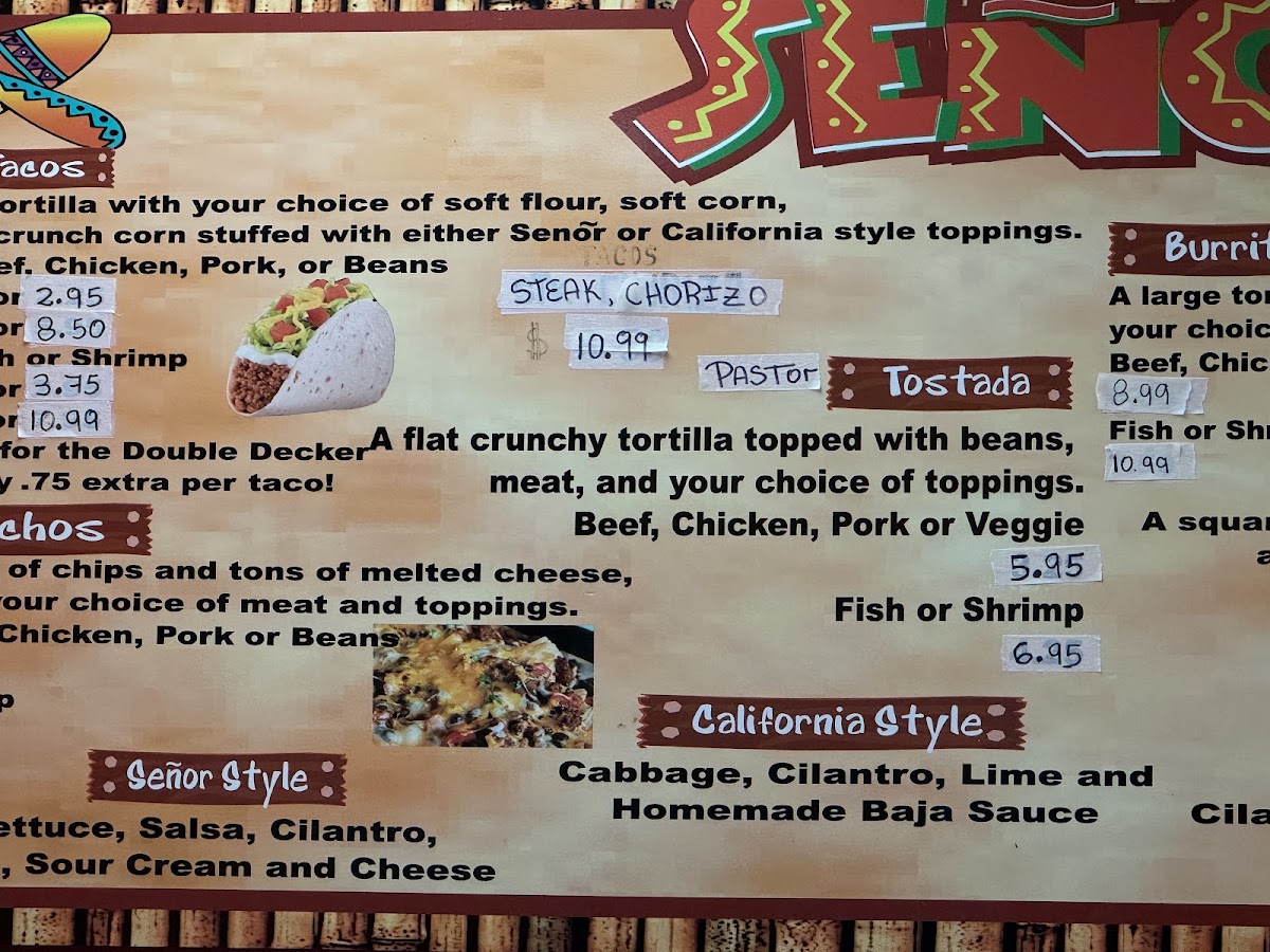 3 tacos , choice of tortilla , pick your style , Senor , California or Mexican style